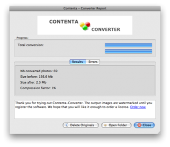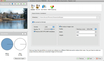 Contenta Converter Premium für Mac OS X konvertiert Bilddateien in andere Formate. Die Software ändert Größe, Name und Dateiformat von einzelnen Dateien oder Bildersammlungen. Im Vergleich zum kostenlosen Contenta Converter Basic verarbeitet die Software auch Dateien der Formate PS, EPS, PDF und RAW.